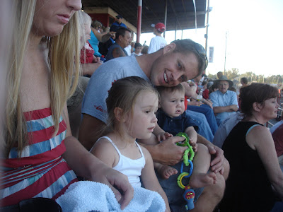 Then on the 4Th, we went to the Roseville Fair Grounds where there were car races going on. Gavin and Lexi did really well. Once the Fireworks started they were happy. Gavin was memorized by the colors in the sky, and Lexi loved the loud noise!! Thanks Auntie Potts and Uncle E for traveling to come spend the weekend with us!!!